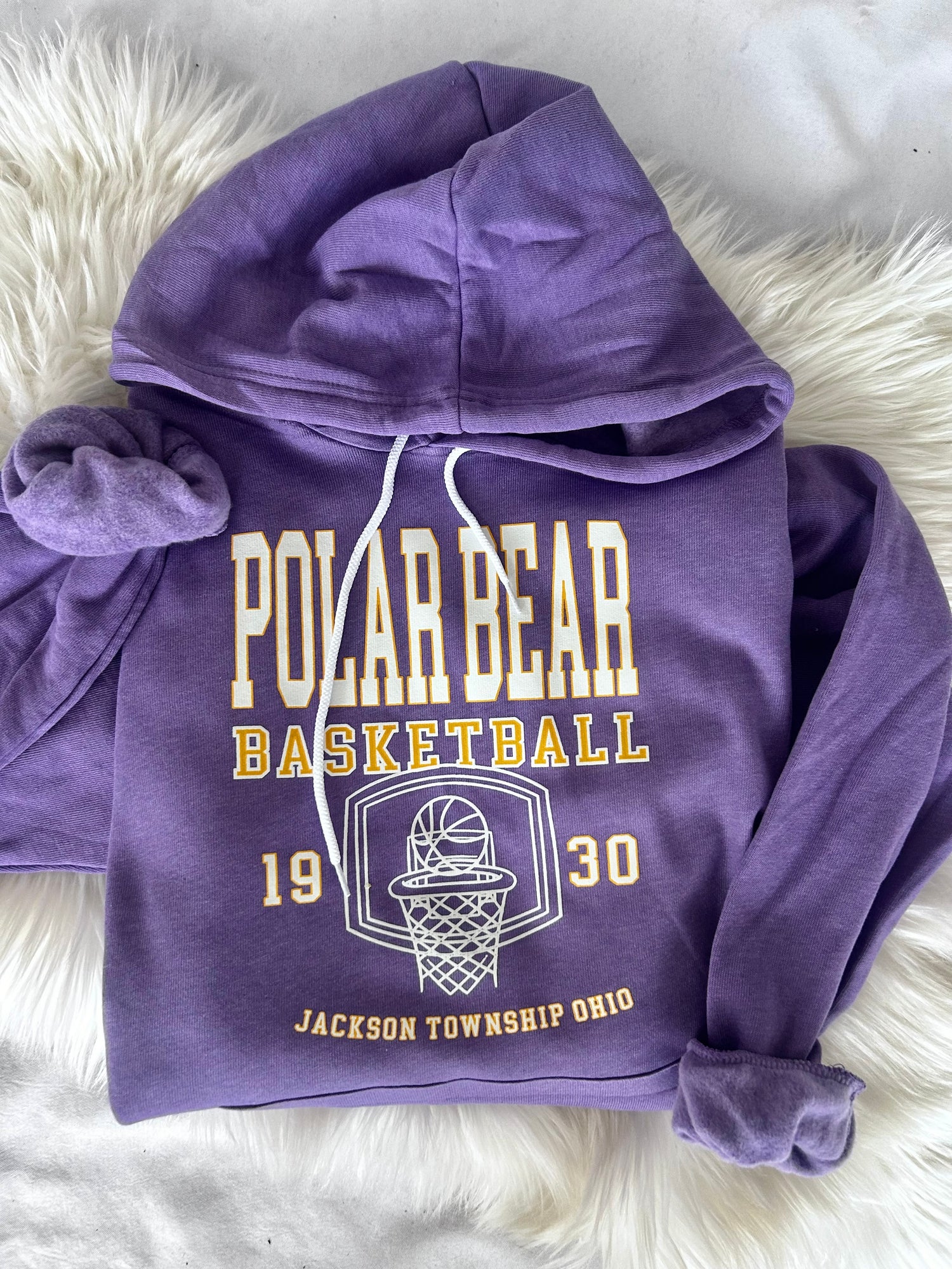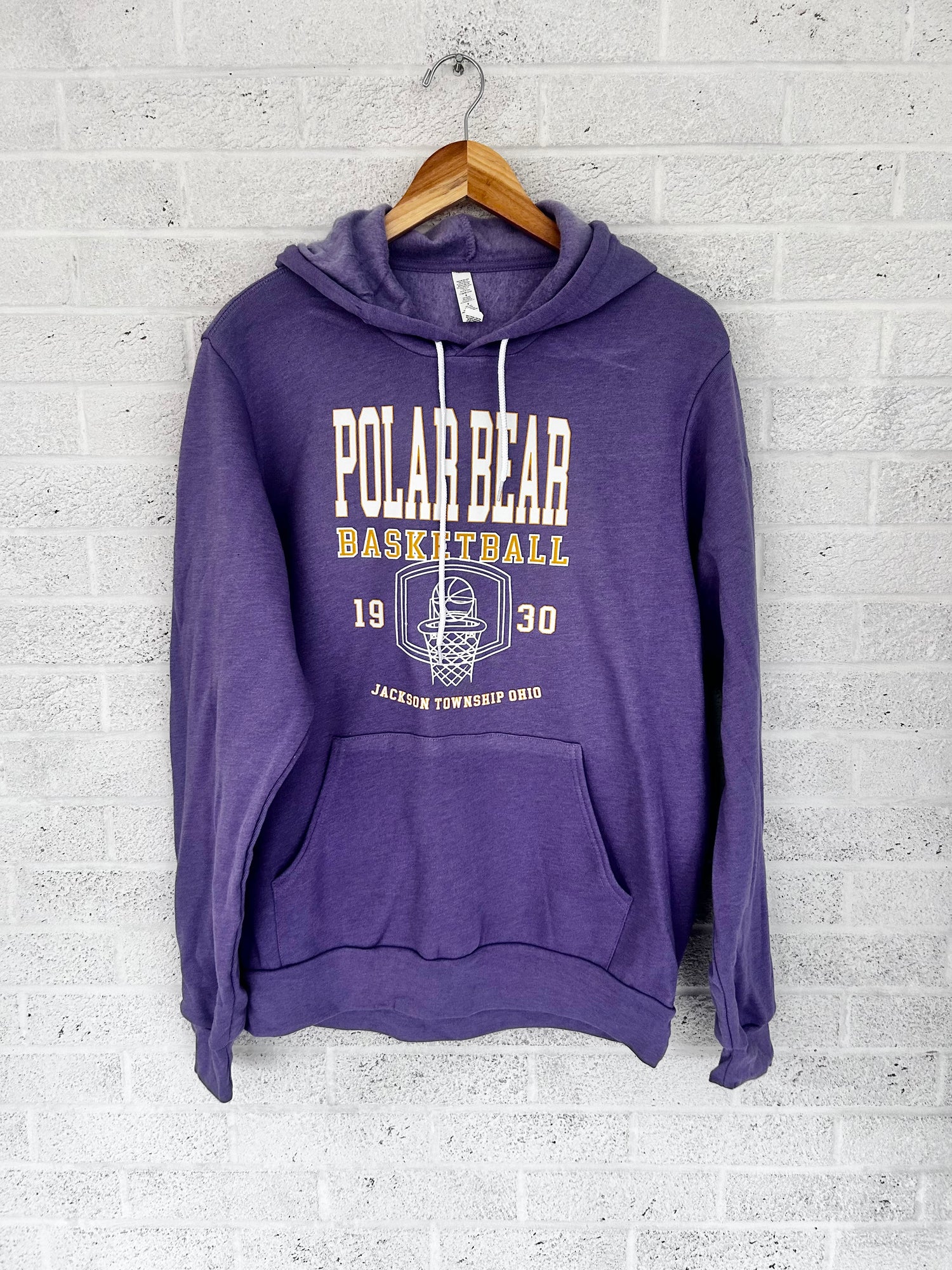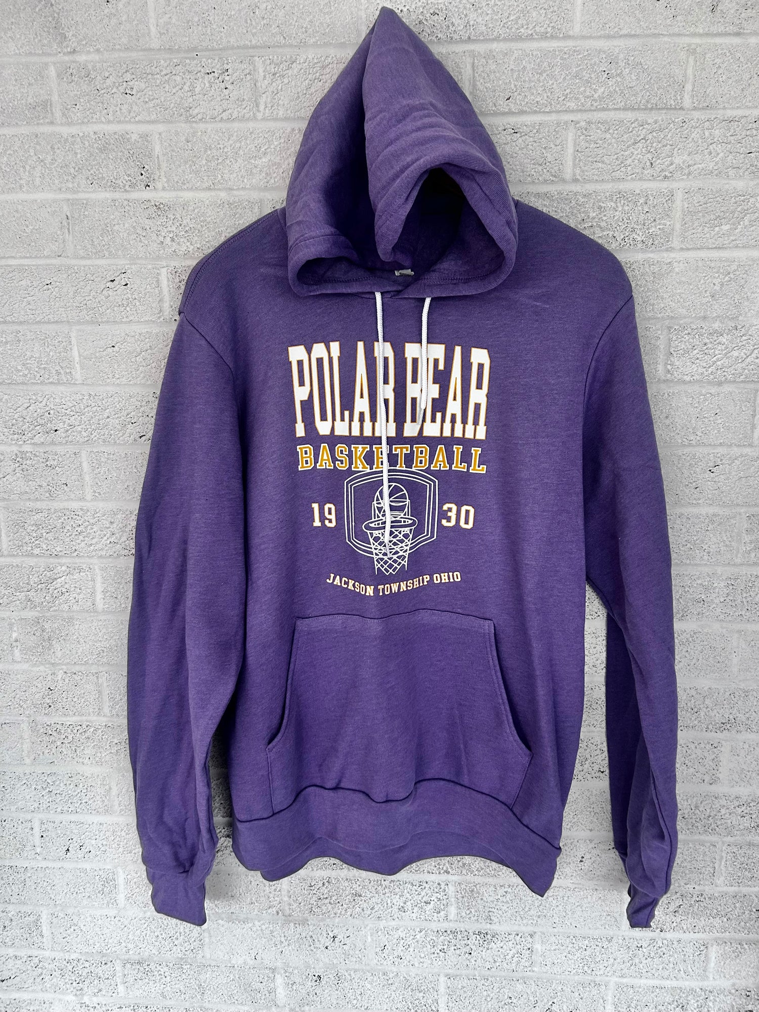 Heather purple hooded sweatshirt.